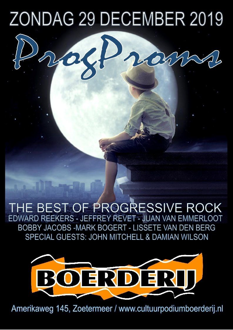 ProgProms is een initiatief van Edward Reekers in samenwerking met De Boerderij. Tussen kerst en oud & nieuw spelen we een bonte verzameling prog rock klassiekers! De eerste show in 2019 werd gevolgd door een uitgestelde editie in 2022, en ook in 2023 sta ik weer met deze show op het podium.